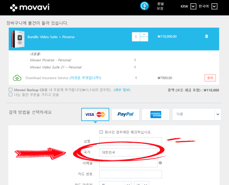 5. 국가 대한민국->중국 으로 클릭해주세요.